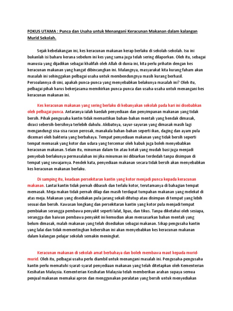 Karangan Pt3 Punca Punca Kejadian Keracunan Makanan Jom Menulis